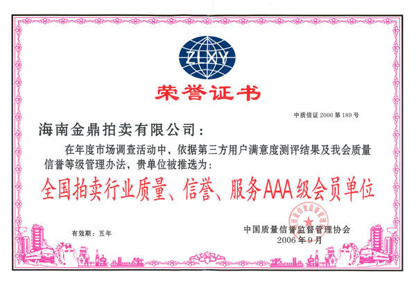 海南金鼎拍賣有限公司成立于2004年2月24日。經(jīng)營(yíng)范圍:許可項(xiàng)目:拍賣業(yè)務(wù)(依法須經(jīng)批準(zhǔn)的項(xiàng)目,經(jīng)相關(guān)部門批準(zhǔn)后方可開(kāi)展經(jīng)營(yíng)活動(dòng))